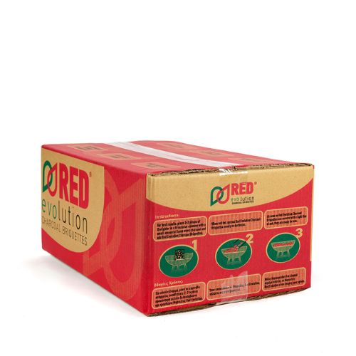 Μπρικέτες Ξυλοκάρβουνου RED EVOLUTION σε χαρτοκιβώτιο των 10 κιλών.